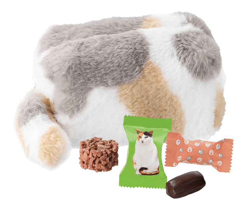三毛猫柄のポーチにチョコレート菓子を2種詰め合わせました。