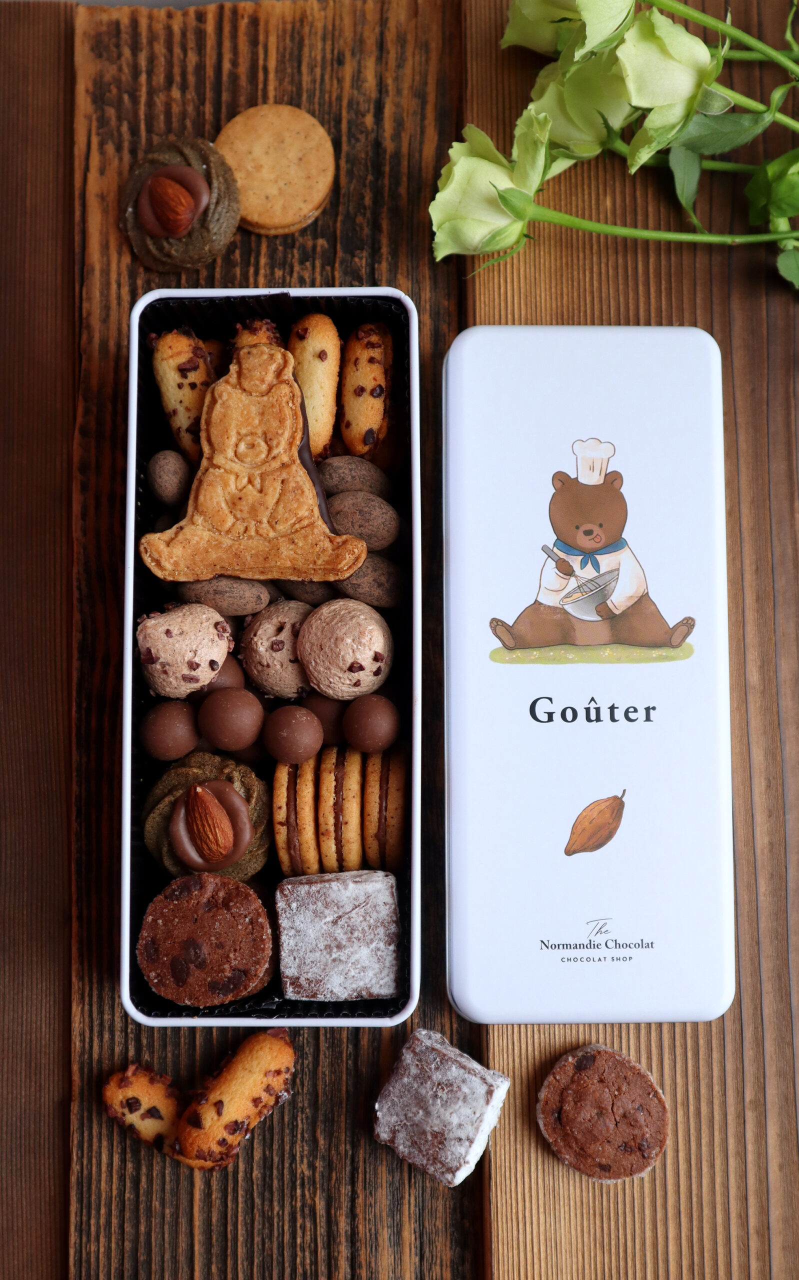 静岡県の人気ショコラトリー、ノルマンディーショコラのこだわりチョコレートとカカオが香る人気商品を詰め合わせて誕生したスイーツ缶です。