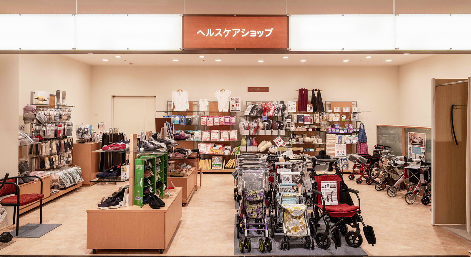ステッキや横押しカート、シルバーカーやシューズなどの歩行用品、生活をサポートしてくれるクッションや衣料品、